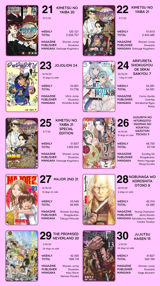 Manga Mogura On Twitter Oricon Weekly Manga Sales Top 50 Week Oct 19 2020 Oct 25 2020 Source Oricon Chart Skillfully Made By Josu Ke Https T Co Kxmqt1qj5n